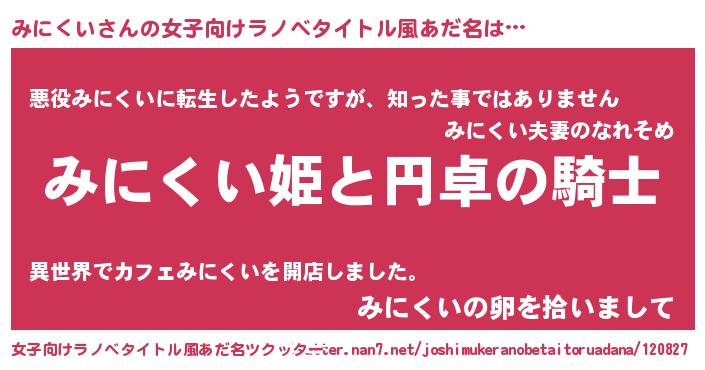 | ヘコむあだ名 | 『みににー』『みに太郎』『牛乳』 |