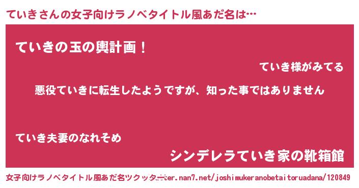 | 胡散臭い通販商品みたいなあだ名 | 『あなたにだけ特別に提供する100年もののヴィンテージワイン…その名も「ていき」』 |