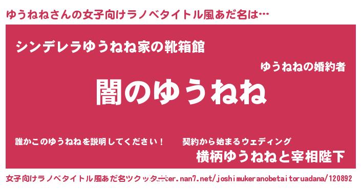 | 男性向けラノベタイトル風あだ名 | 『Re:ゆうねねから始める異世界生活』 |