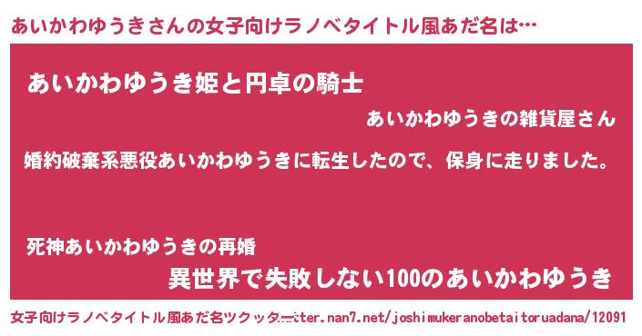| 男性向けラノベタイトル風あだ名 | 『アイカワユウキスレイヤー』 |