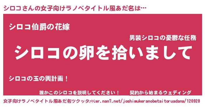 | ヘコむあだ名 | 『シロ太郎』『なまこ酢』『シロにー』 |