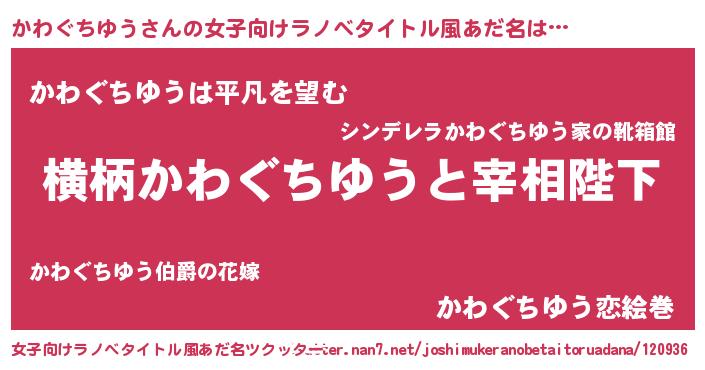 | 男性向けラノベタイトル風あだ名 | 『かわぐちゆうに滅ぼされるだけの簡単なお仕事です』 |
