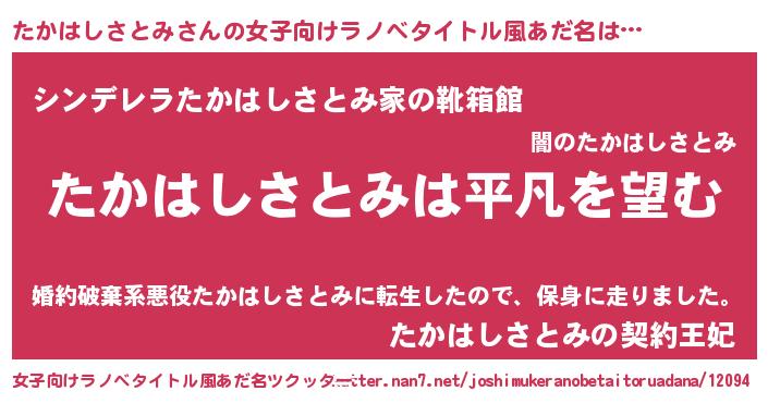 | 胡散臭い通販商品みたいなあだ名 | 『信頼と実績のサプリメント…その名も「たかはしさとみ」』 |