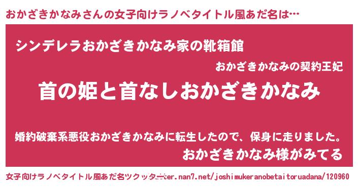 | 男性向けラノベタイトル風あだ名 | 『はたらくおかざきかなみさま!』 |