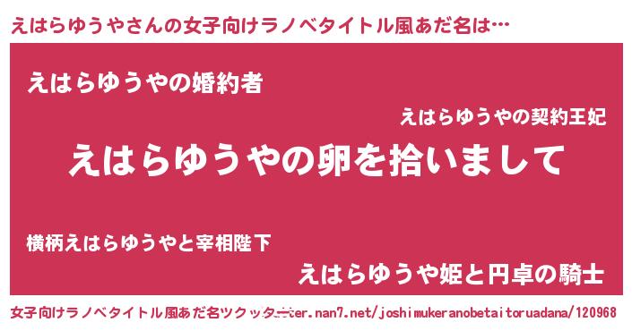 | 男性向けラノベタイトル風あだ名 | 『ダンジョンにえはらゆうやを求めるのは間違っているだろうか』 |