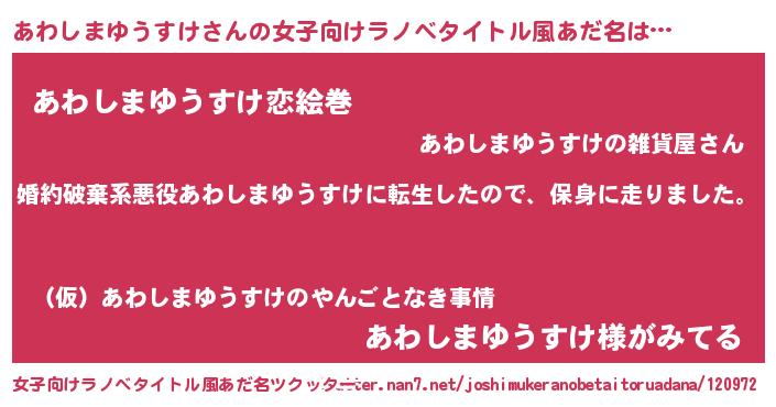 | 男性向けラノベタイトル風あだ名 | 『転生したらあわしまゆうすけだった件』 |