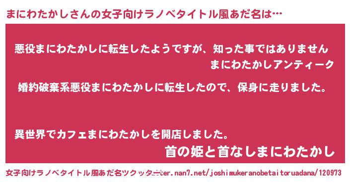 | 胡散臭い通販商品みたいなあだ名 | 『ハリウッド女優が絶賛した世界で10本だけ現存している希少なブランデー…その名も「まにわたかし」』 |