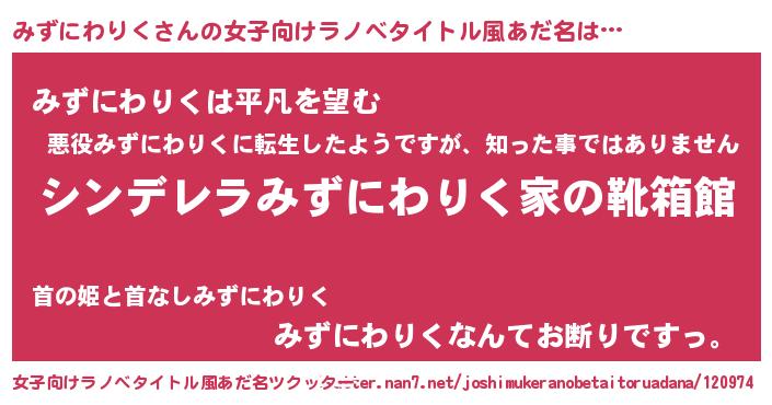 | 男性向けラノベタイトル風あだ名 | 『緋弾のミズニワリク』 |
