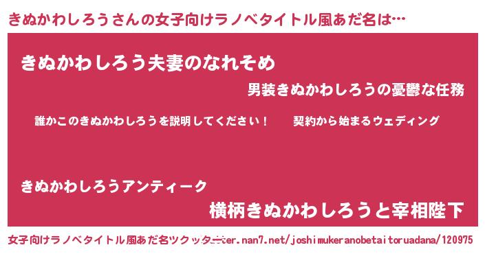 | 男性向けラノベタイトル風あだ名 | 『キヌカワシロウアートオンライン』 |