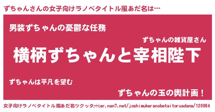 | 男性向けラノベタイトル風あだ名 | 『ずちゃんに滅ぼされるだけの簡単なお仕事です』 |
