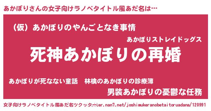 | 男性向けラノベタイトル風あだ名 | 『ノーゲーム・ノーアカボリ』 |