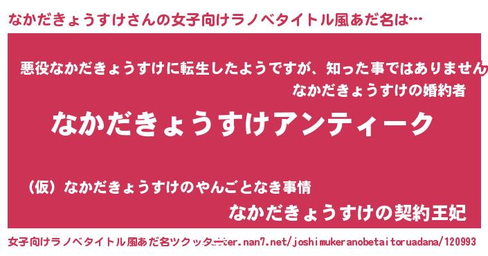 | 男性向けラノベタイトル風あだ名 | 『魔法科高校のなかだきょうすけ』 |