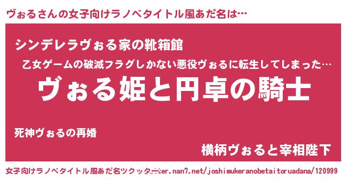 | 男性向けラノベタイトル風あだ名 | 『ヴォルアートオンライン』 |