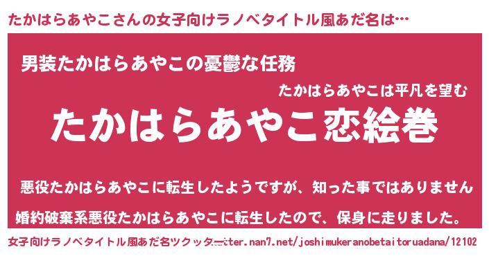 | 男性向けラノベタイトル風あだ名 | 『ノーゲーム・ノータカハラアヤコ』 |