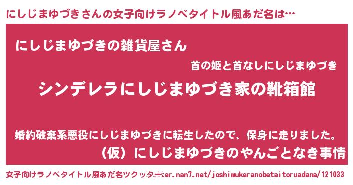 | 胡散臭い通販商品みたいなあだ名 | 『幸せが訪れる高級そうな絵画…その名も「にしじまゆづき」』 |