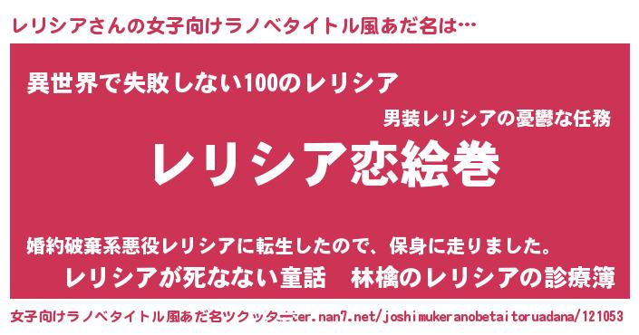 | ヘコむあだ名 | 『レリシア(爆)』『牛乳』『レリっ子』 |