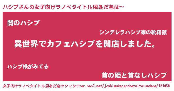 | 男性向けラノベタイトル風あだ名 | 『誰もが恐れるあのハシブが、ぼくの専属メイドになるようです。』 |