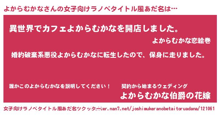 | 胡散臭い通販商品みたいなあだ名 | 『絶対に幸福をもたらす健康食品…その名も「よからむかな」』 |