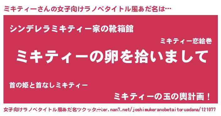 | 男性向けラノベタイトル風あだ名 | 『ミキティーの嫁は女の子じゃないと思った?』 |