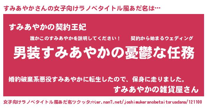 | 男性向けラノベタイトル風あだ名 | 『うちのすみあやかが世界を掌握している!』 |