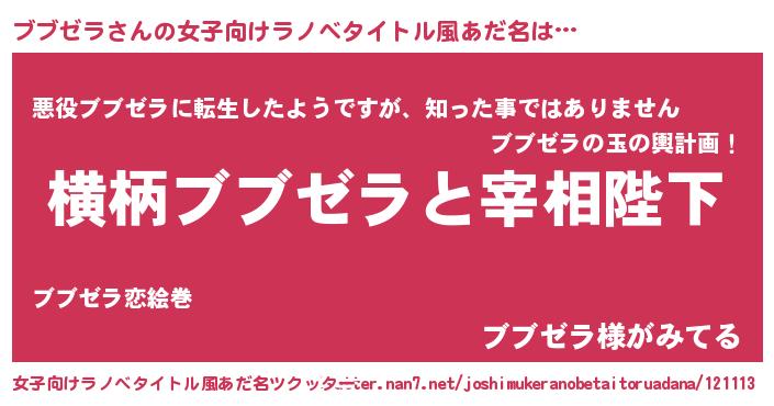 | 意味不明あだ名 | 『住所不定無職ブブゼラ(13歳)』 |