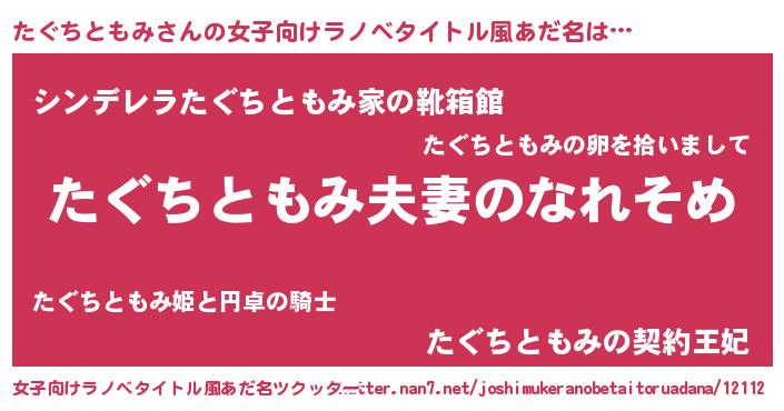 | 男性向けラノベタイトル風あだ名 | 『おまえをオタクにしてやるから、俺をたぐちともみにしてくれ! 』 |