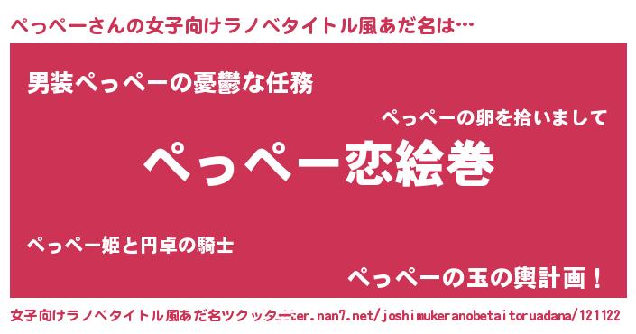 | 男性向けラノベタイトル風あだ名 | 『ノーゲーム・ノーペッペー』 |