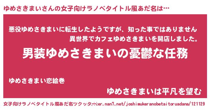 | ヘコむあだ名 | 『ゆめ太郎』『ゆめさきまい(笑)』 |