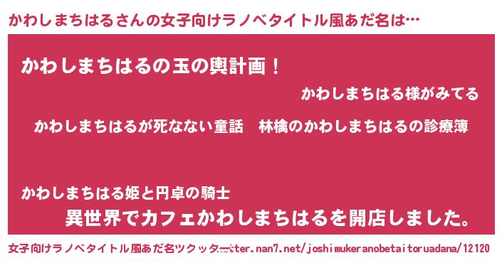 | ヘコむあだ名 | 『かわしまちはる(遠い目)』『かわぷりん』 |