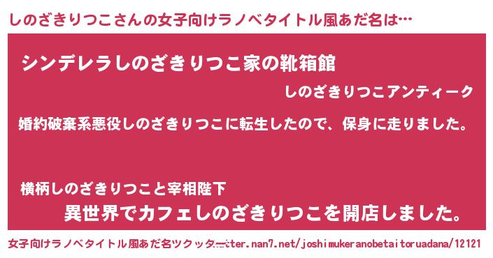 | 男性向けラノベタイトル風あだ名 | 『転生したらしのざきりつこだった件』 |