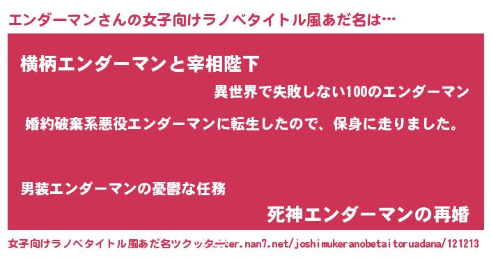 | 男性向けラノベタイトル風あだ名 | 『エンダーマンスレイヤー』 |