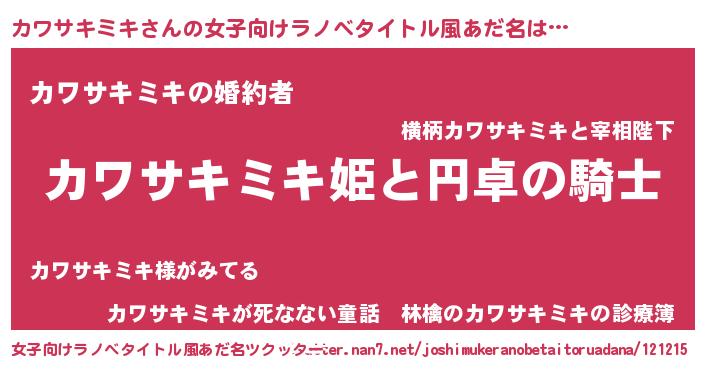 | 男性向けラノベタイトル風あだ名 | 『カワサキミキの憂鬱』 |