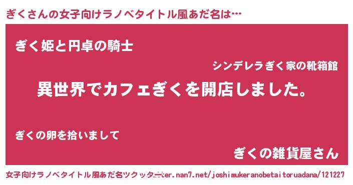 | 胡散臭い通販商品みたいなあだ名 | 『前代未聞の健康食品…その名も「ぎく」』 |