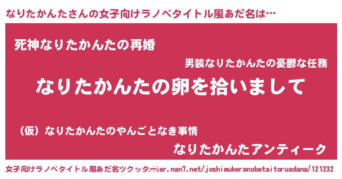 | 男性向けラノベタイトル風あだ名 | 『なりたかんたの嫁は女の子じゃないと思った?』 |