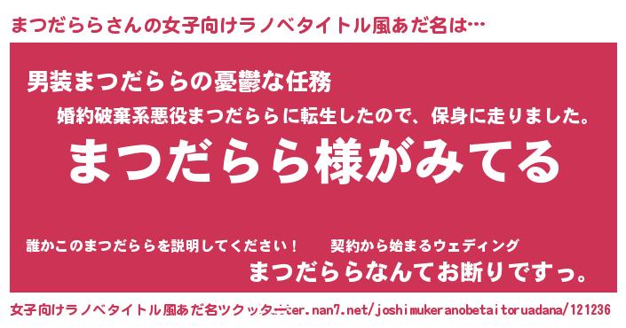 | 胡散臭い通販商品みたいなあだ名 | 『全米が絶賛したサプリメント…その名も「まつだらら」』 |