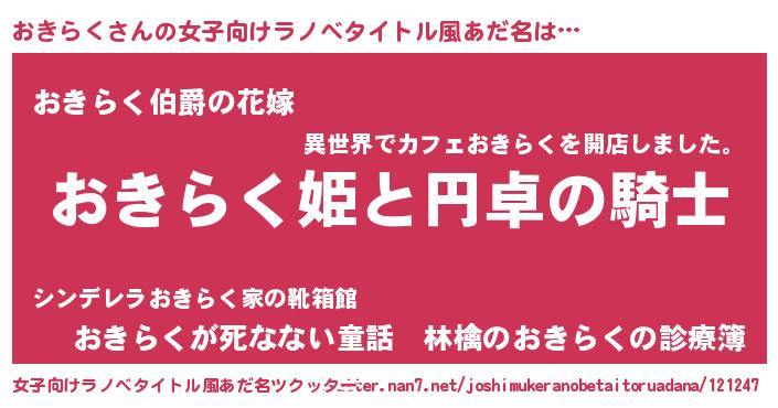 | 胡散臭い通販商品みたいなあだ名 | 『モテモテ間違いなしブレスレット…その名も「おきらく」』 |