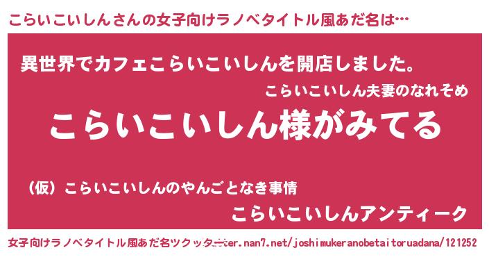 | 男性向けラノベタイトル風あだ名 | 『こらいこいしんの嫁は女の子じゃないと思った?』 |