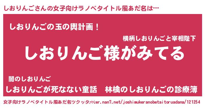 | 男性向けラノベタイトル風あだ名 | 『しおりんごの嫁は女の子じゃないと思った?』 |