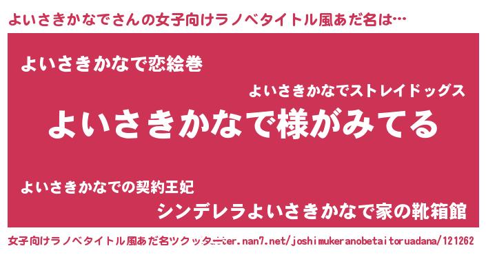 | 男性向けラノベタイトル風あだ名 | 『よいさきかなでの嫁は女の子じゃないと思った?』 |