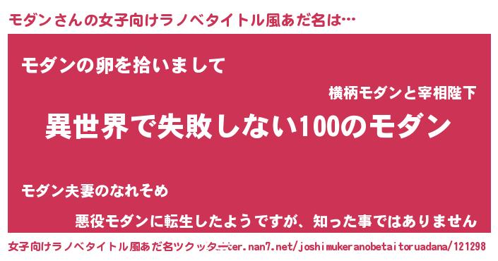 | ヘコむあだ名 | 『モダン(笑)』『モダっちょ』 |