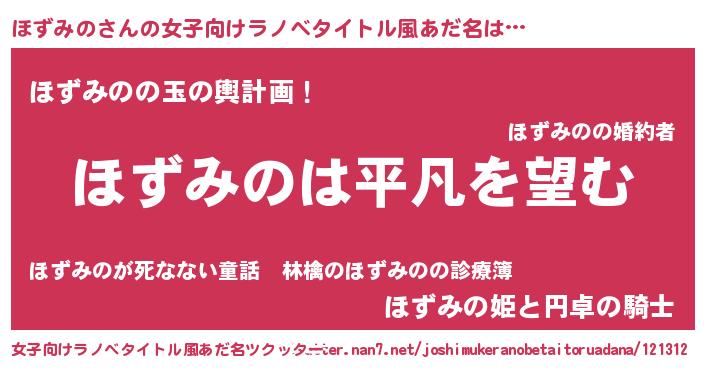 | 胡散臭い通販商品みたいなあだ名 | 『信頼と実績のネックレス…その名も「ほずみの」』 |