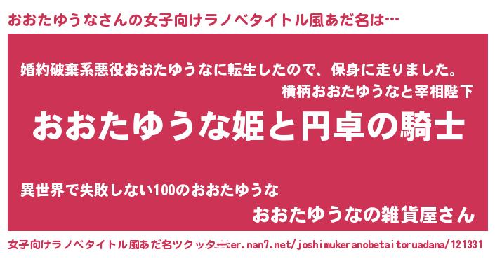 | 男性向けラノベタイトル風あだ名 | 『オオタユウナアートオンライン』 |