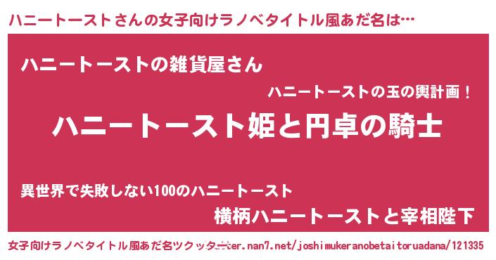 | 男性向けラノベタイトル風あだ名 | 『ハニートーストの憂鬱』 |