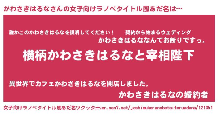 | ヒーロー風カッコイイあだ名 | 『スーパーカワサキハルナ』 |