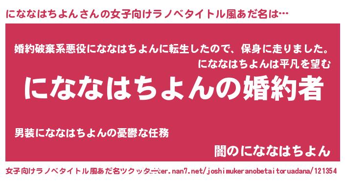 | ファンタジー風あだ名 | 『エターナルニナナハチヨンー』 |