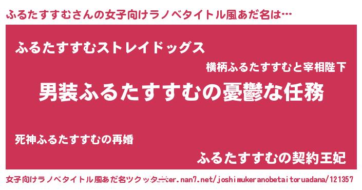 | 男性向けラノベタイトル風あだ名 | 『うちのふるたすすむが世界を掌握している!』 |