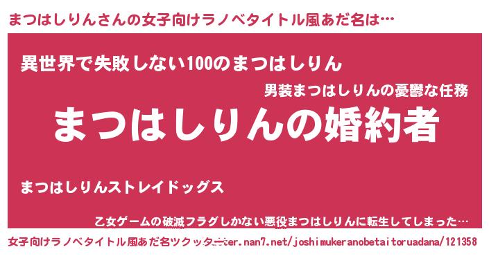 | ファンタジー風あだ名 | 『エターナルマツハシリンー』 |