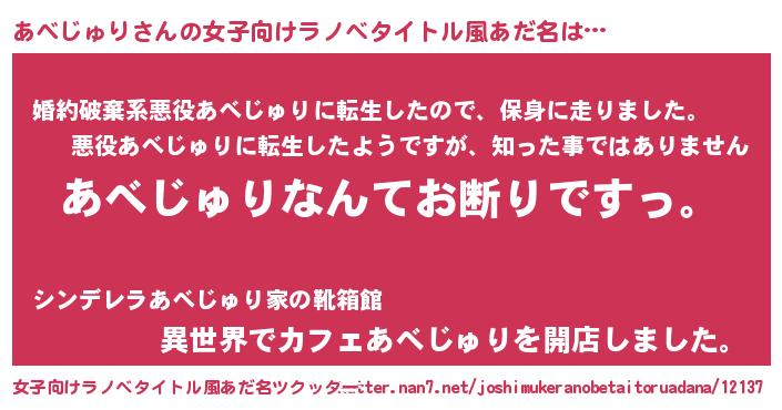 | 男性向けラノベタイトル風あだ名 | 『魔法科高校のあべじゅり』 |