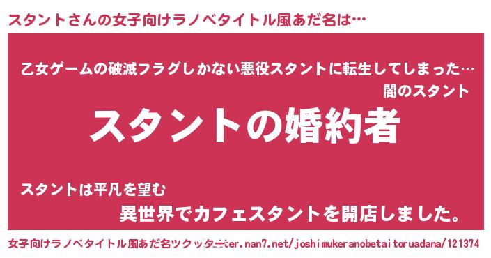 | 胡散臭い通販商品みたいなあだ名 | 『運命の人と巡り会える高級そうな絵画…その名も「スタント」』 |