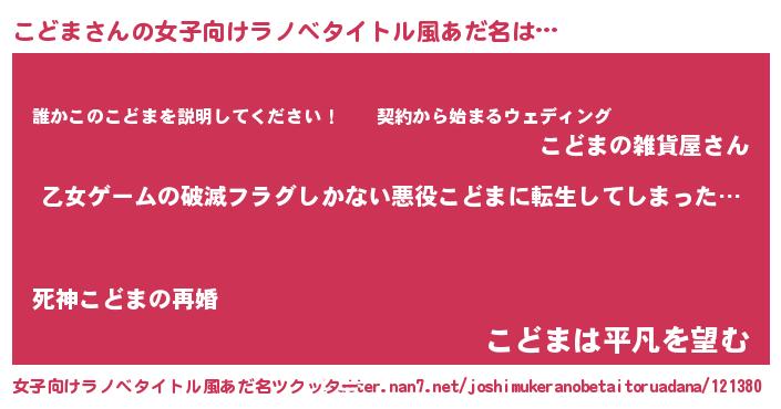 | 胡散臭い通販商品みたいなあだ名 | 『世界中を虜にした100年もののヴィンテージワイン…その名も「こどま」』 |